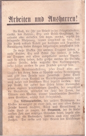 Einkleber "Arbeiten & Ausharren" imMilitärpass des Soldaten Johann Jung, Kusel |