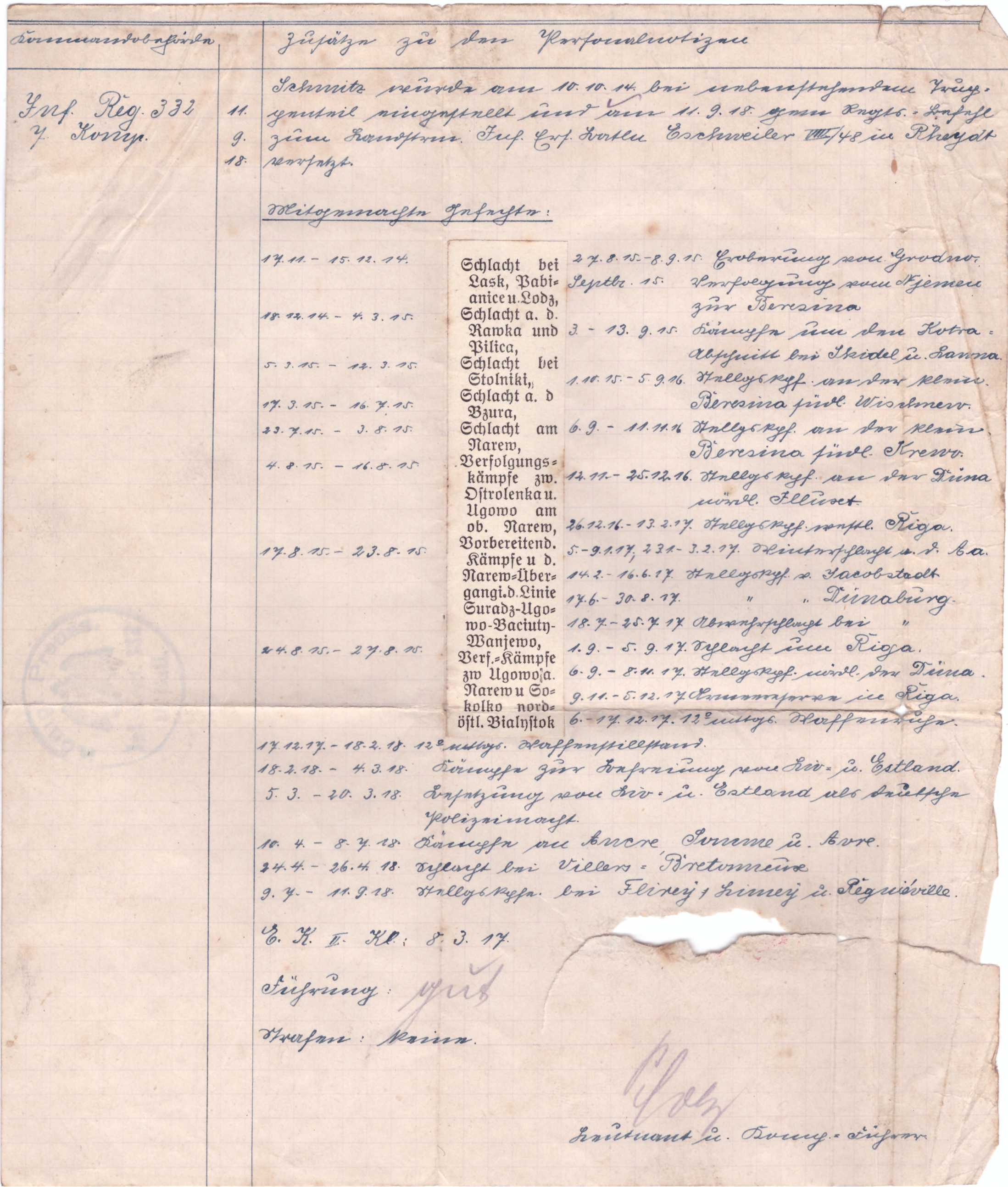 Am 30.11.1918 wurde er Infolge der Demobilmachung