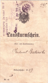 LandsturmLandsturmscheinPreussenM. Radinski |