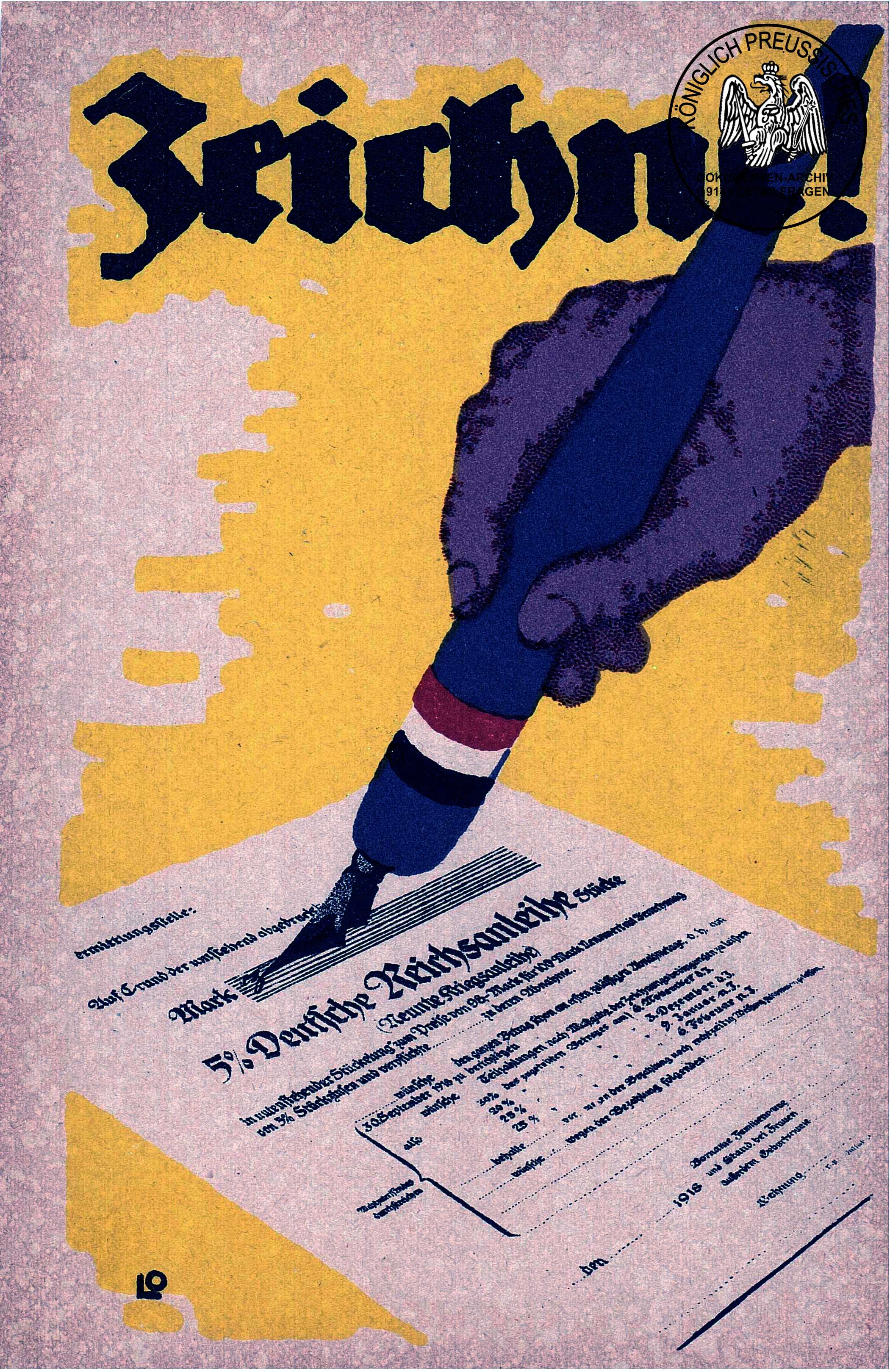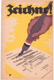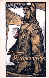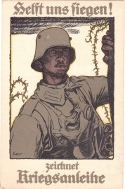 Diese Karte fordert zum Zeichnen von Kriegsanleihen auf,um die Finanzierung des Krieges sicher zu stellen. |