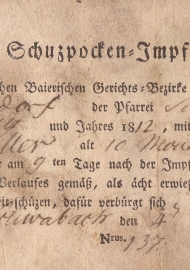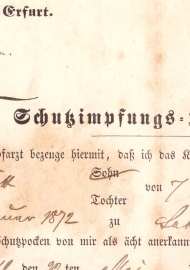 Bescheinigung der Pocken-Erstimpfung des Impflings