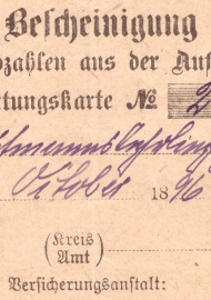 Bescheinigung über die Zahlungen von Sozialabgaben an die Versicherungsanstalt Berlin für den 1896 geborenen Kaufmannslehring Heinrich Jacob. |