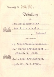 Bestallung zum Vormund für Sattlermeister Max Hannes