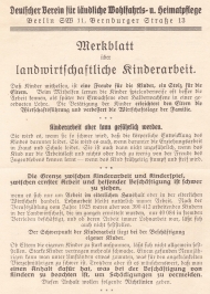 Merkblatt zur landwirtschaftlichen Kinderarbeit herausgegeben vom Deutscher Verein für ländliche Wohlfahrts- und Heimatpflege |