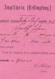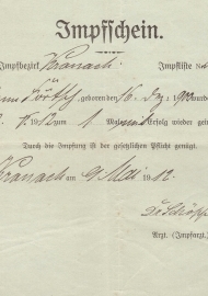 GesundheitswesenImpfwesenImpfscheinErstimpfungJohann Fürth |