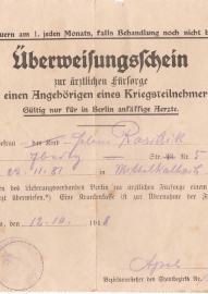 Überweisungsschein für einen Angehörigen des Kriegsteilnehmers
