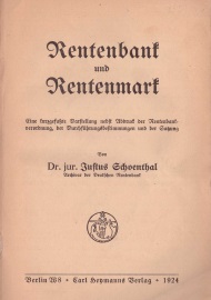 Abhandlung über die Rentenbank und die Rentenmark in einer Kurzdarstellung von Dr. Jur. Justus Schoenthal.