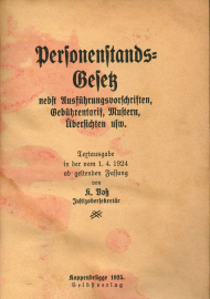 Personenstandsgesetz nebst Ausführungsvorschriften, Gebührentarif, Mustern, Übersichten usw. geltende Fassung ab dem 01.04.1924 |