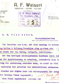 Schreiben der Firma A.F. Weisert aus Kristiania (NOR),