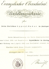 Bestallung für Herrmann Schmandt aus Hechingen zum Landmesser. Bei dem Dokument handelt es sich um eine Abschrift; die eigentliche Bestallung erfolgte am 30.11.1908 in Berlin. |