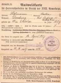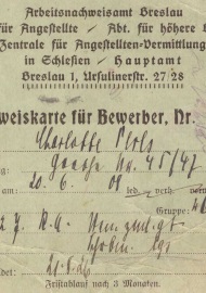 Nachweiskarte für Charlotte Verls des Arbeitsnachweisamtes