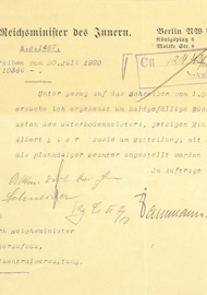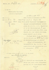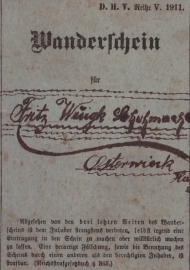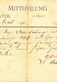 Ladung zur Prüfung für den Schlosserlehrling Wilhelm Geiger. In der Ladung wird dem Prüfling auch mitgeteilt, welcher Art sein Gesellenstück sein soll, welches er zur Prüfung zu herzustellen hat. |