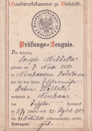 Prüfungszeugnis der Handwerkskammer zu Bielefeld