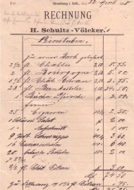 Rechnung der Firma H. Schultz & Völcker für die Lieferung