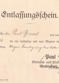 Abschlußzeugnis für den Mauerlehrling Wilhelm Hofmann. |