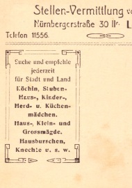 Postkarte der Stellenvermittlung Helene Mahnert aus Leipzig. |