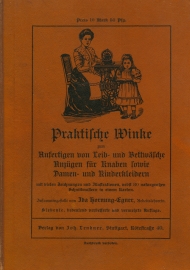Praktische Winke zum Anfertigen von Leib- und Bettwäsche Anzügen für Knaben sowie Damen- und Kinderkleidern mit vielen Zeichnungen und Illustrationen, nebst 80 Naturgroßen Schnittmustern in einem Karton. Siebente, bedeutend verbesserte und vermehrte Auflage. |