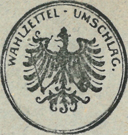 Siegelmarke/Stempel zur Kennzeichnung der zugelassenen Wahlzettelumschläge für die Nationalversammlung. |