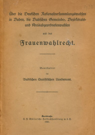 Badisches Statistisches Landesamt: Über die deutschen Nationalversammlungswahlen in Baden, die Badischen Gemeinde-, Bezirksrats- und Kreisabgeordnetenwahlen und das Frauenwahlrecht. Bearbeitet im Badischen Statistischen Landesamt. C.F. Müllersche Hofbuchhandlung. |