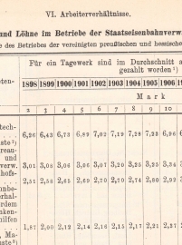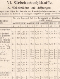 Arbeitslöhne bei der staatlichen Eisenbahn.Berichtszeitraum 1898 - 1912 |