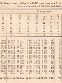 Sterbefälle von Militärpersonen infolge des Weltkriegesnach dem Alter in den Provinzen und im Staate (Preussen);einschl. sämtlicher bis zum 31.03.1923 eingegangenen Nachträge.Berichtszeitraum 1914 - 1918 |