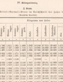 Schätzung der Mittel- (=Normal-) Ernte im Durchschnitt der Jahre 1904 und 1915;die Schätzungen basieren auf den Angaben von 4255 Vertrauensmännern.Erhebungszeitraum 1904 - 1905Detailzahlen zum Ernteertrag. |