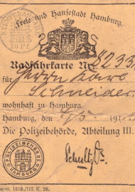 Radfahrkarte für Karl Schneider aus Hamburg. |