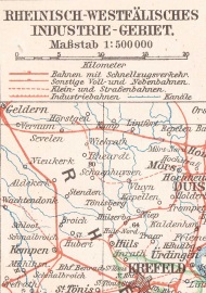 Karte des rheinisch-Westfaelischen Industriegebietes, inclusive der Bahnlinien