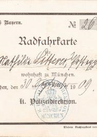 Radfahrkarte für Mathilde Litterer aus München. |