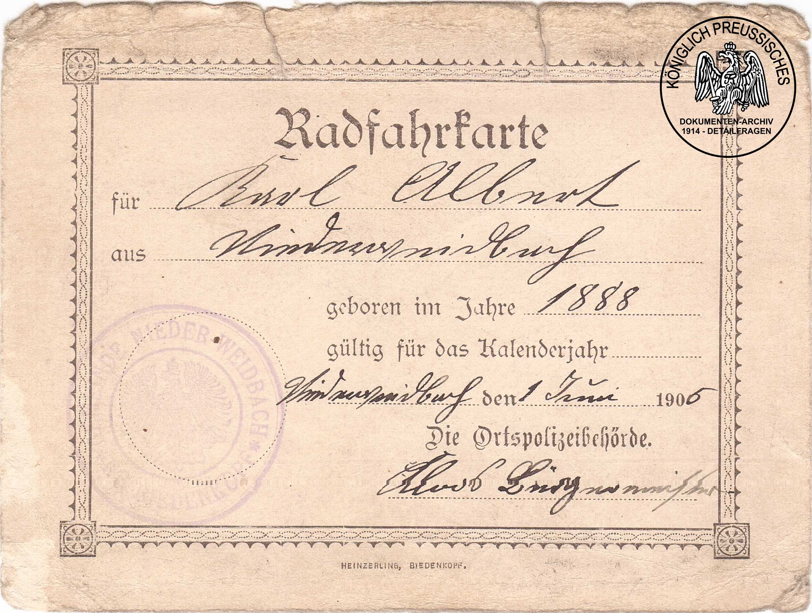 RadfahrkartePreussenHeinrich Henk |