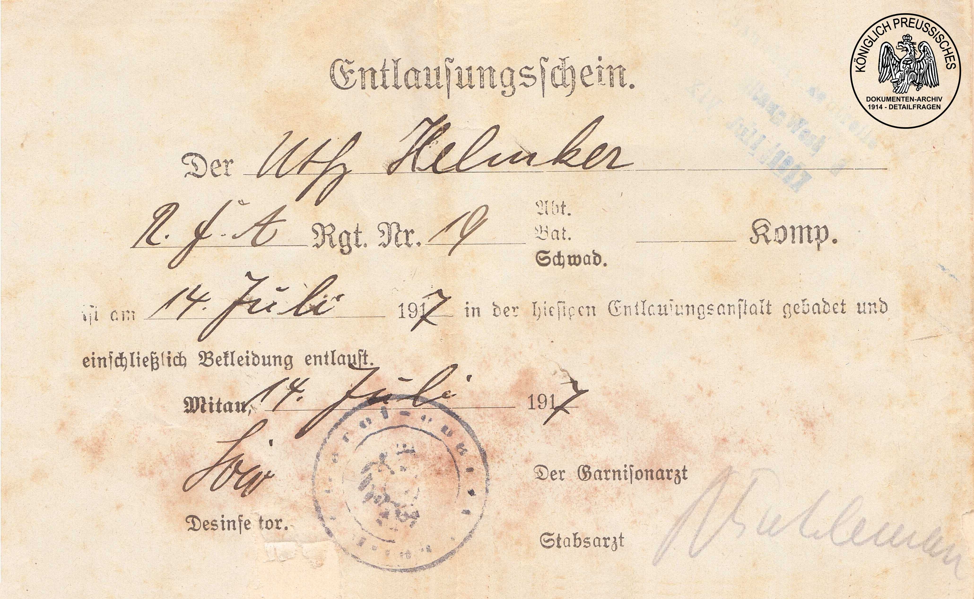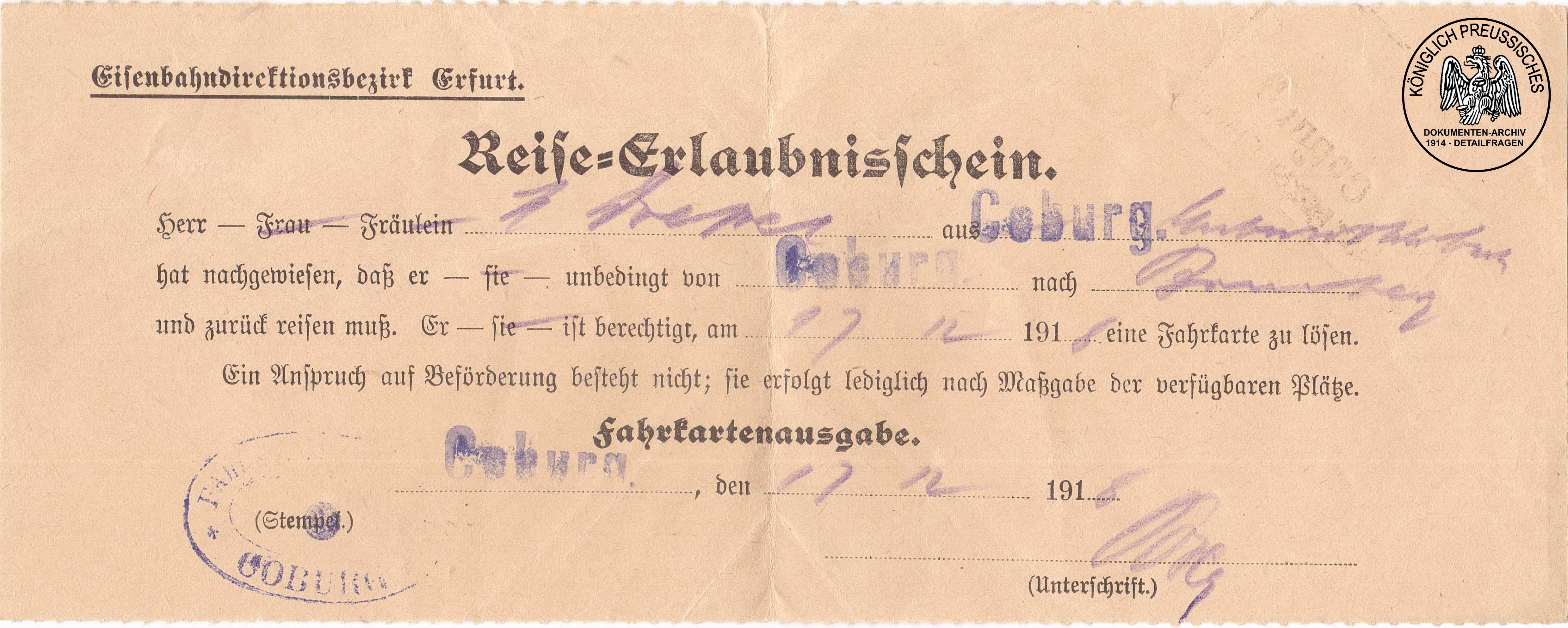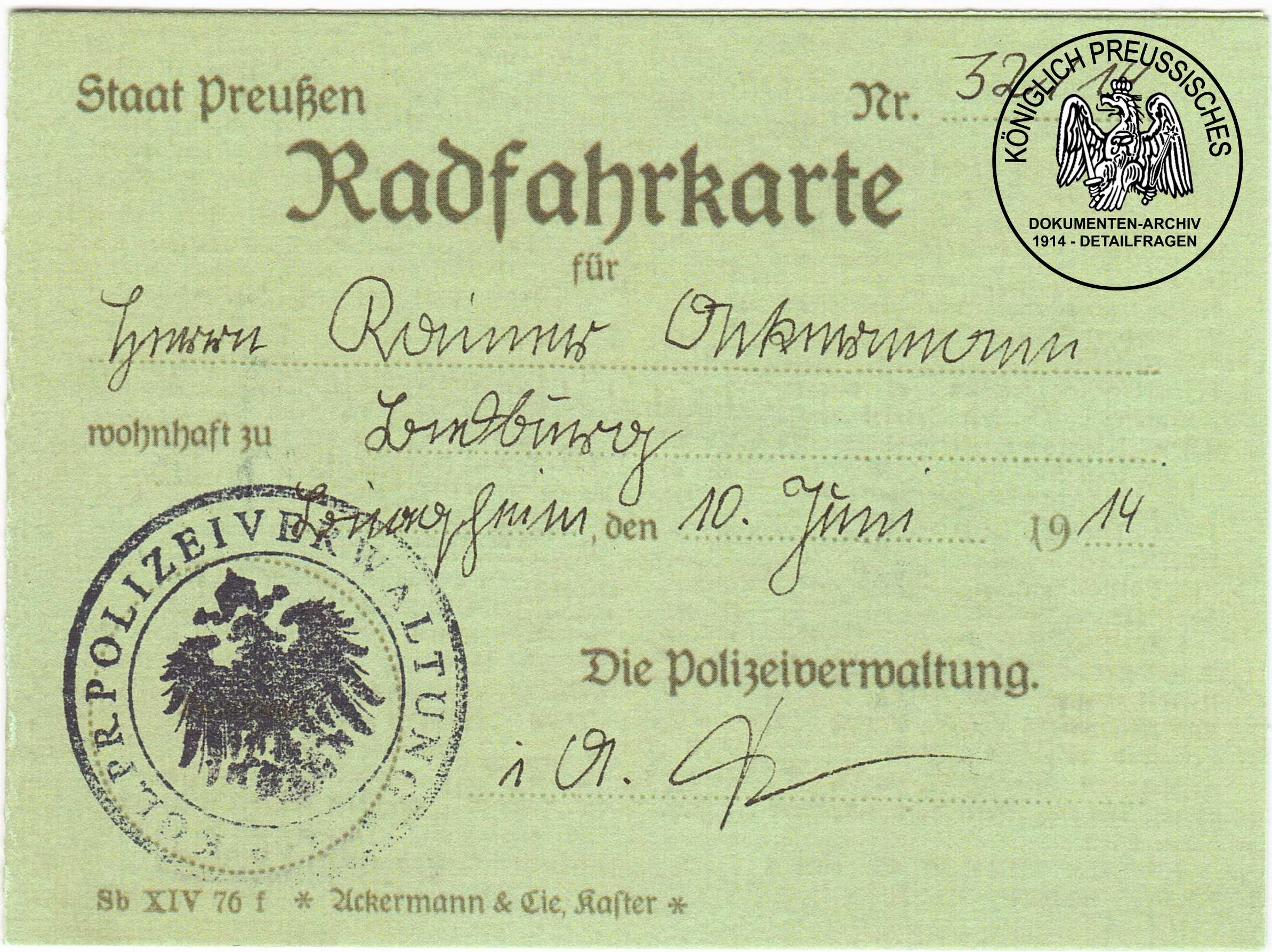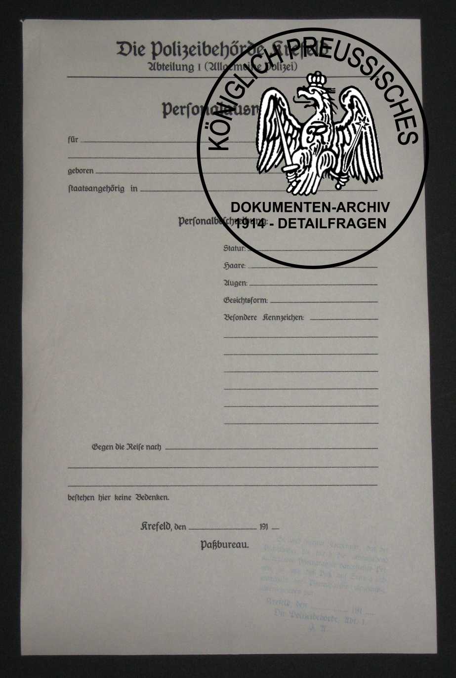 Vorlage von 1916 ausgegeben von der Polizeibehörde